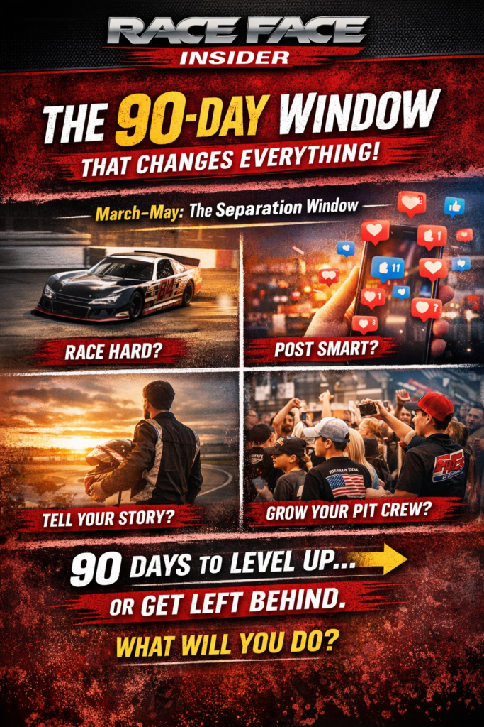 “The 90-Day Window That Changes Everything” Every driver wants a breakthrough season. More wins.Better finishes.Bigger opportunities. But here’s the truth most people miss: 👉 Seasons don’t change careers… windows do. And right now—you’re in one. The March–May Window From now through late spring, everything starts stacking: Race schedules ramp up Content starts flowing Sponsors start…