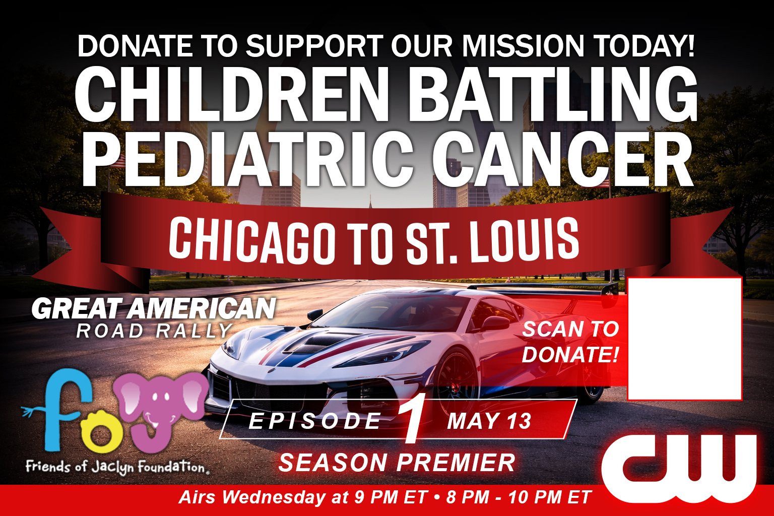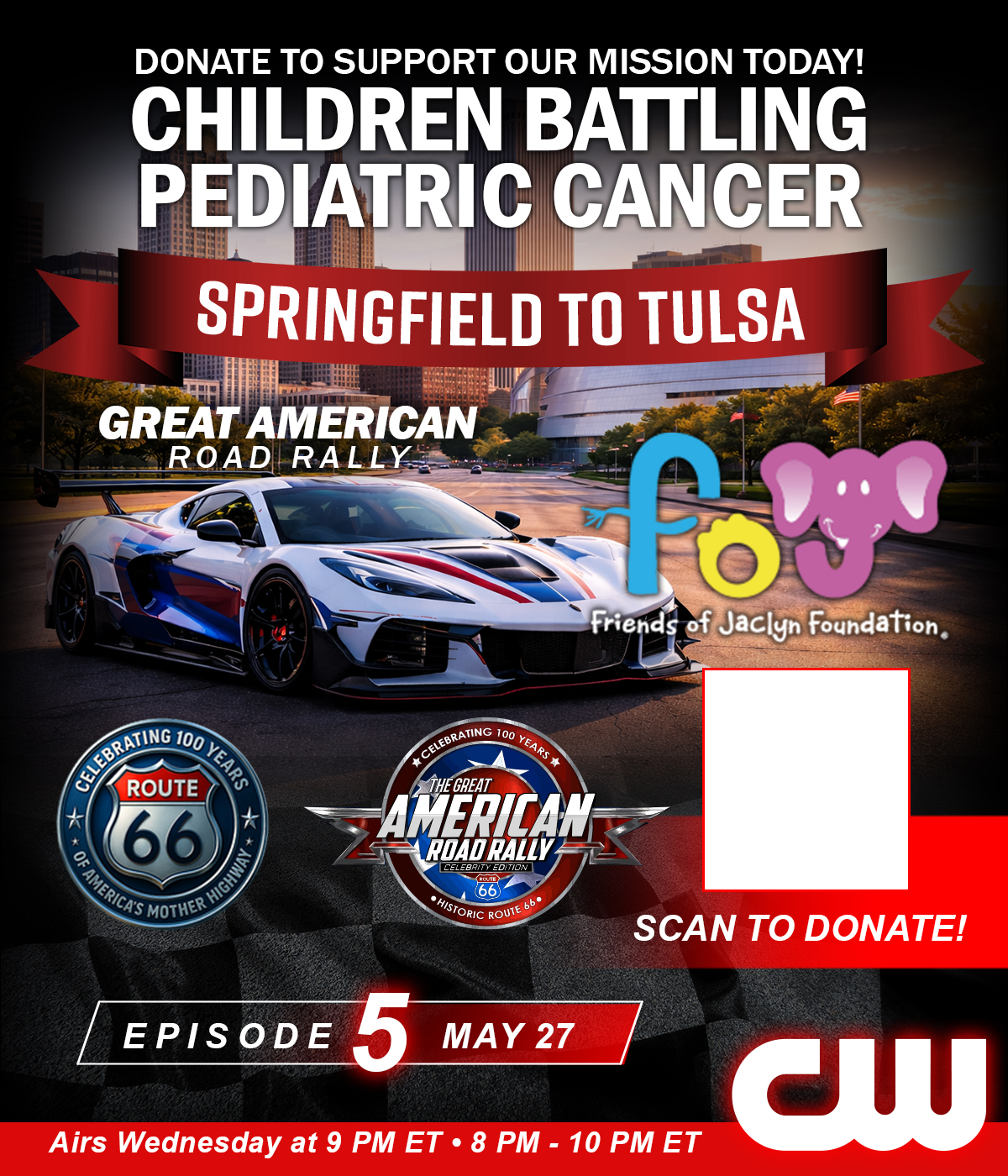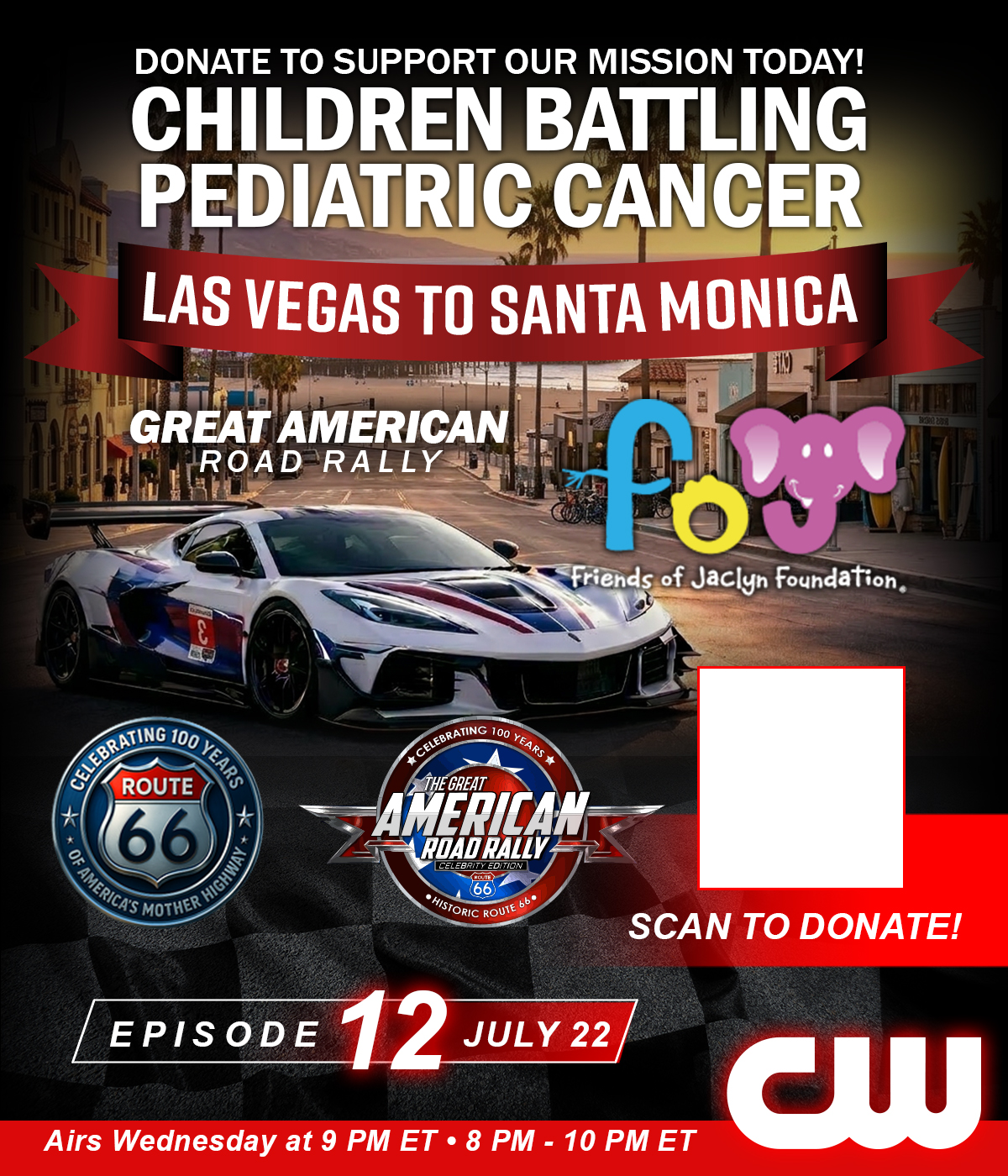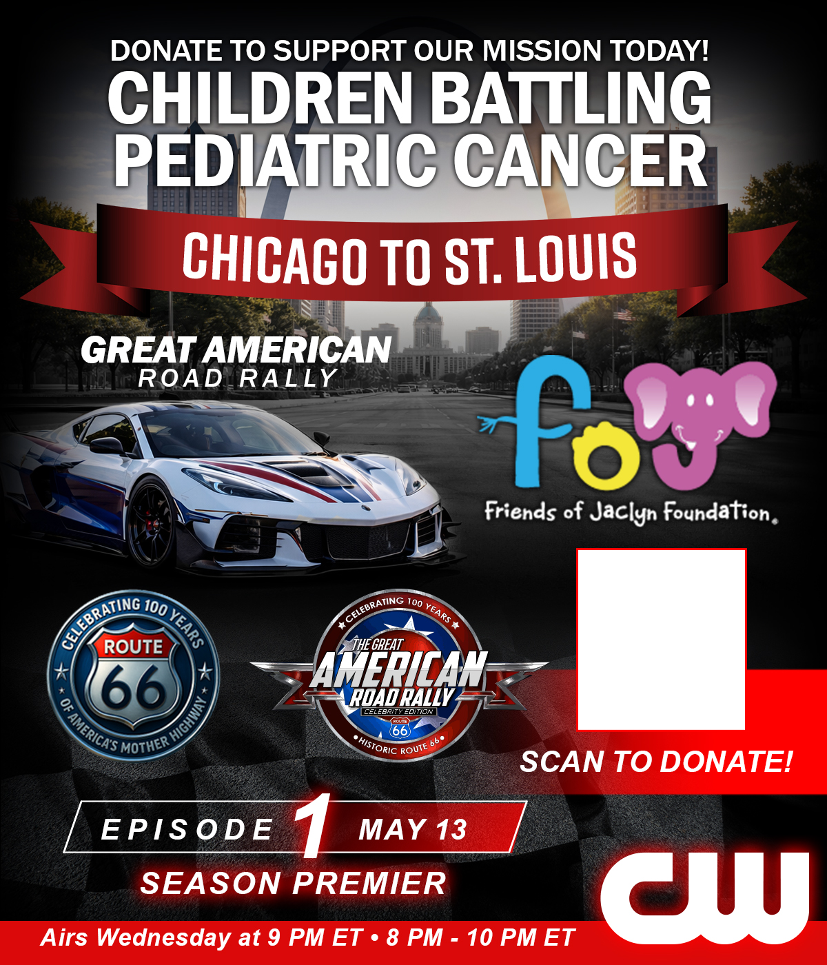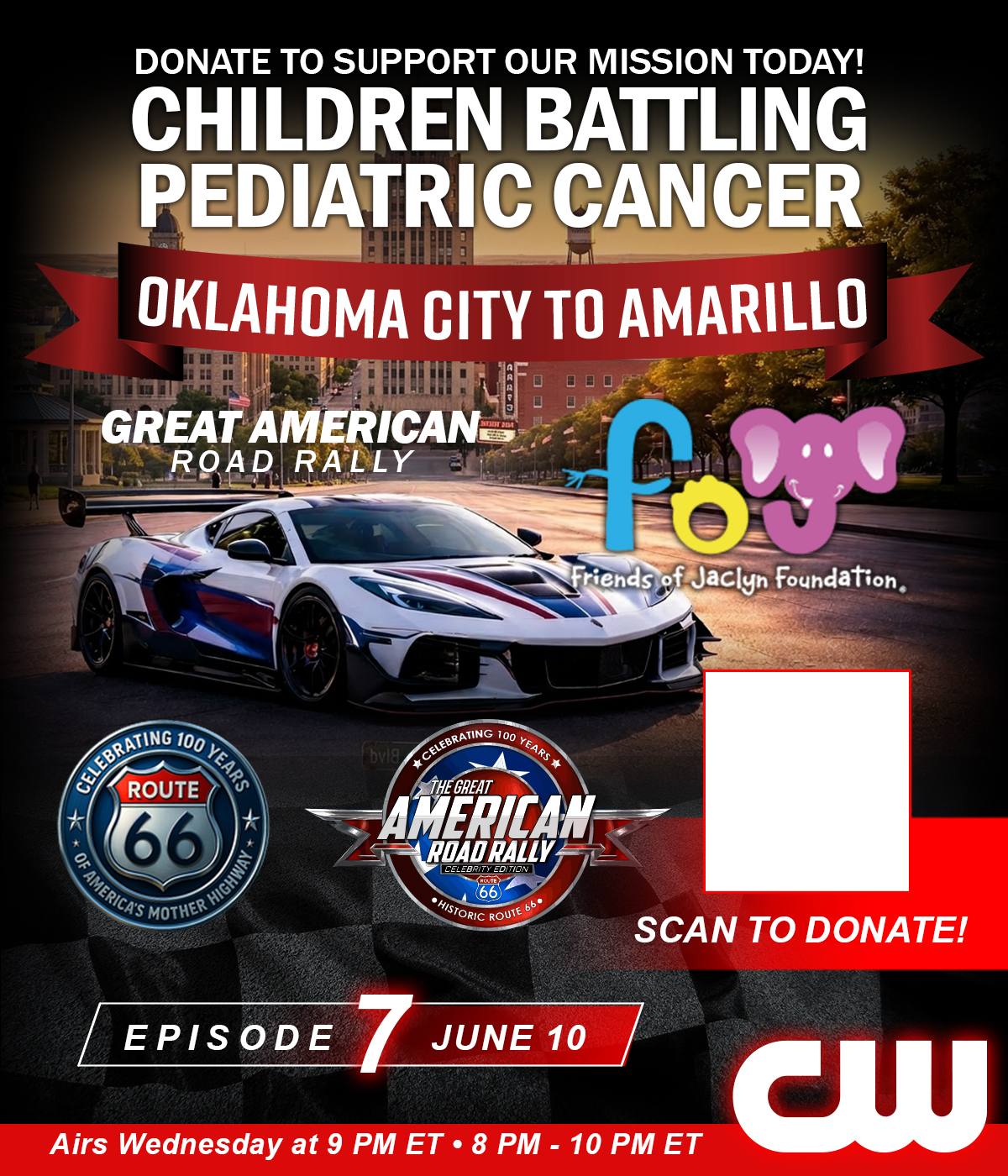 Starting May 13 at 9 PM ET, the Great American Road Rally takes over The CW Network — with new episodes airing every Wednesday night for 12 consecutive weeks. From coast to coast, viewers will experience the cars, the concerts, the community, and the mission supporting the Friends of Jaclyn Foundation. Don’t miss a single mile of the journey.