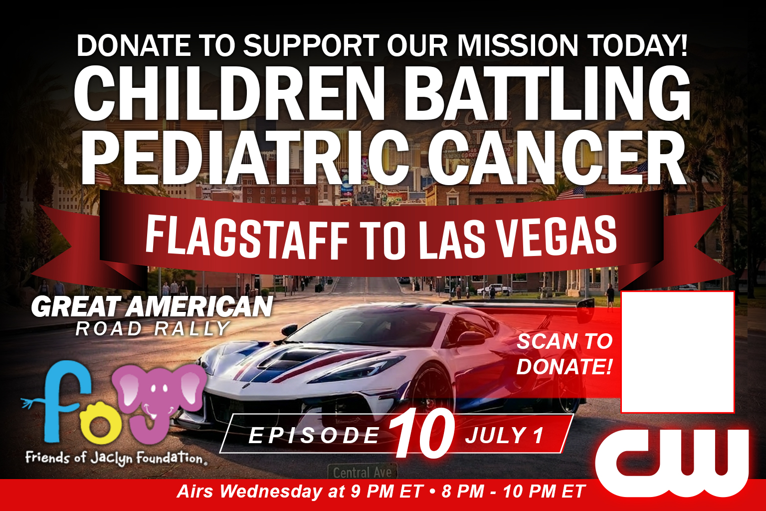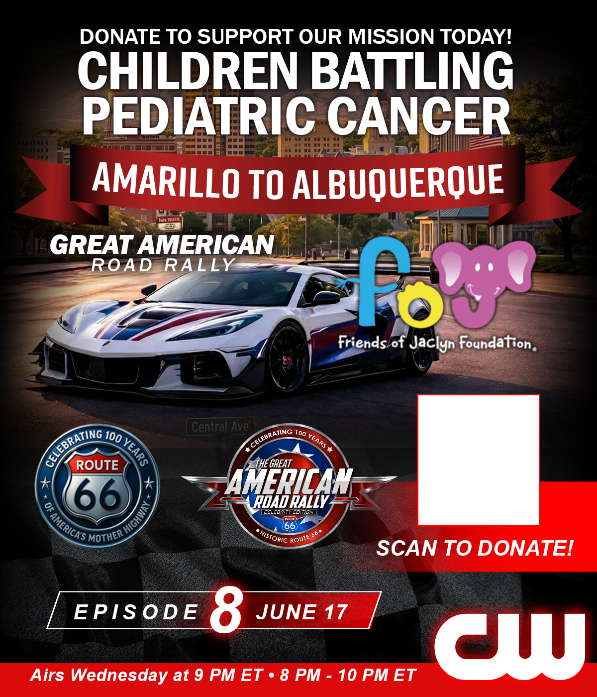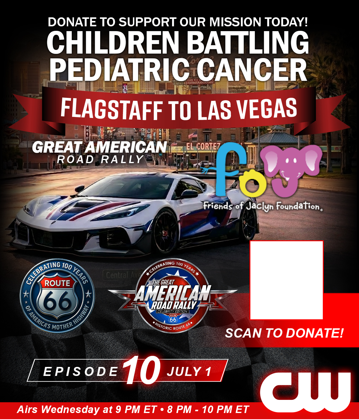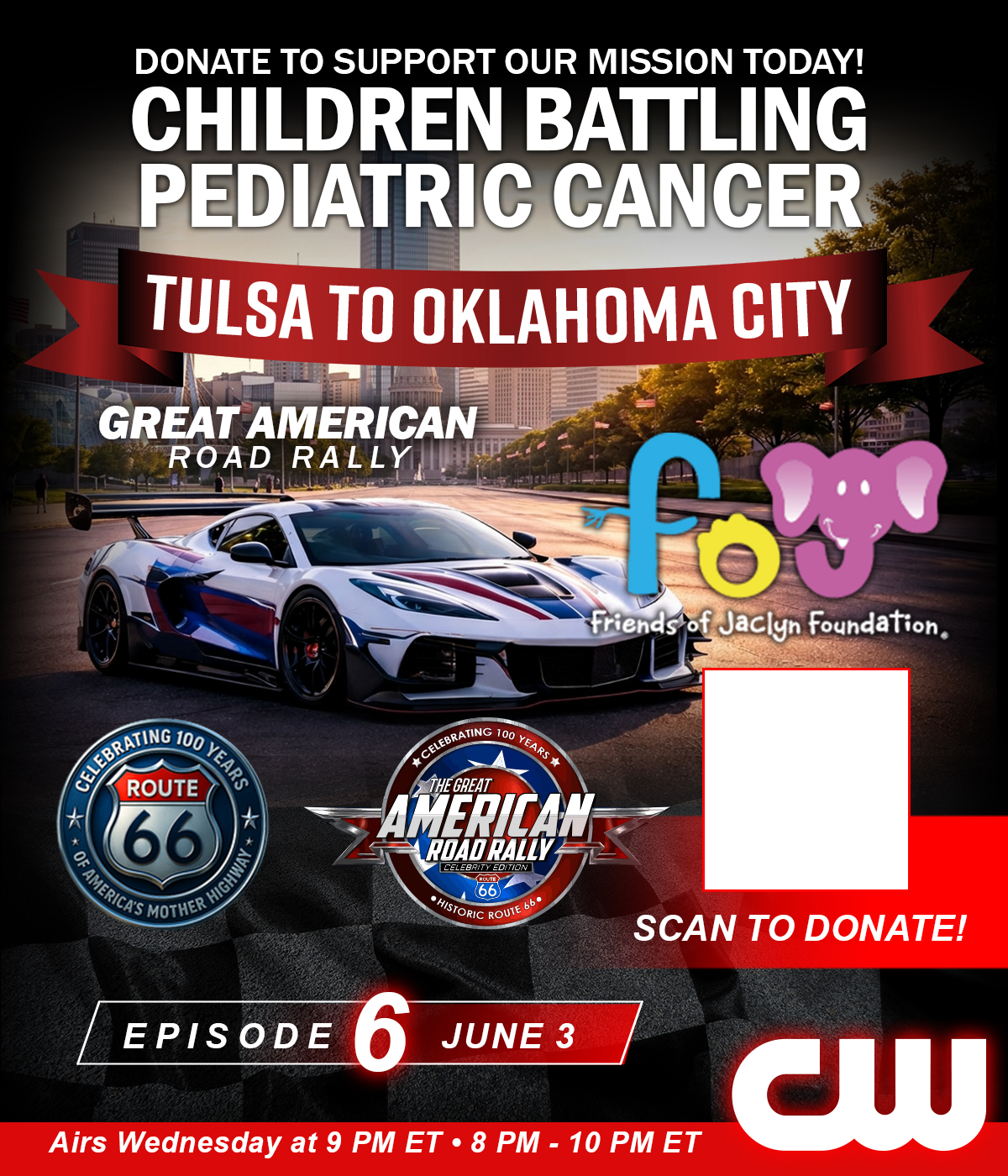 Starting May 13 at 9 PM ET, the Great American Road Rally takes over The CW Network — with new episodes airing every Wednesday night for 12 consecutive weeks. From coast to coast, viewers will experience the cars, the concerts, the community, and the mission supporting the Friends of Jaclyn Foundation. Don’t miss a single mile of the journey.
