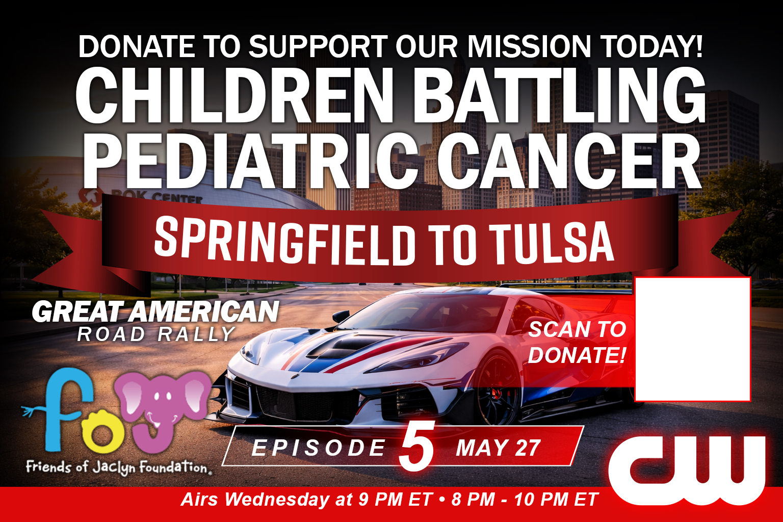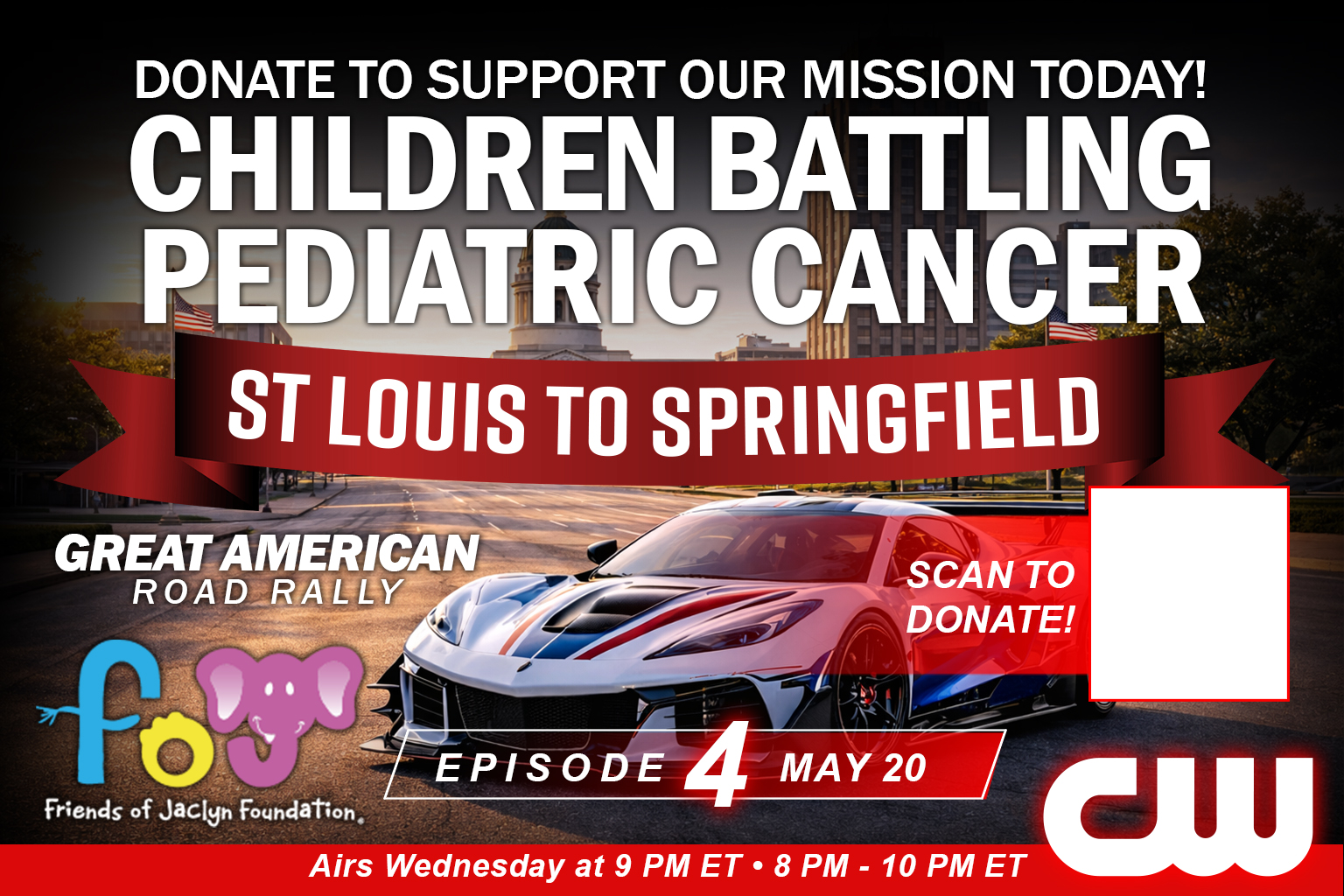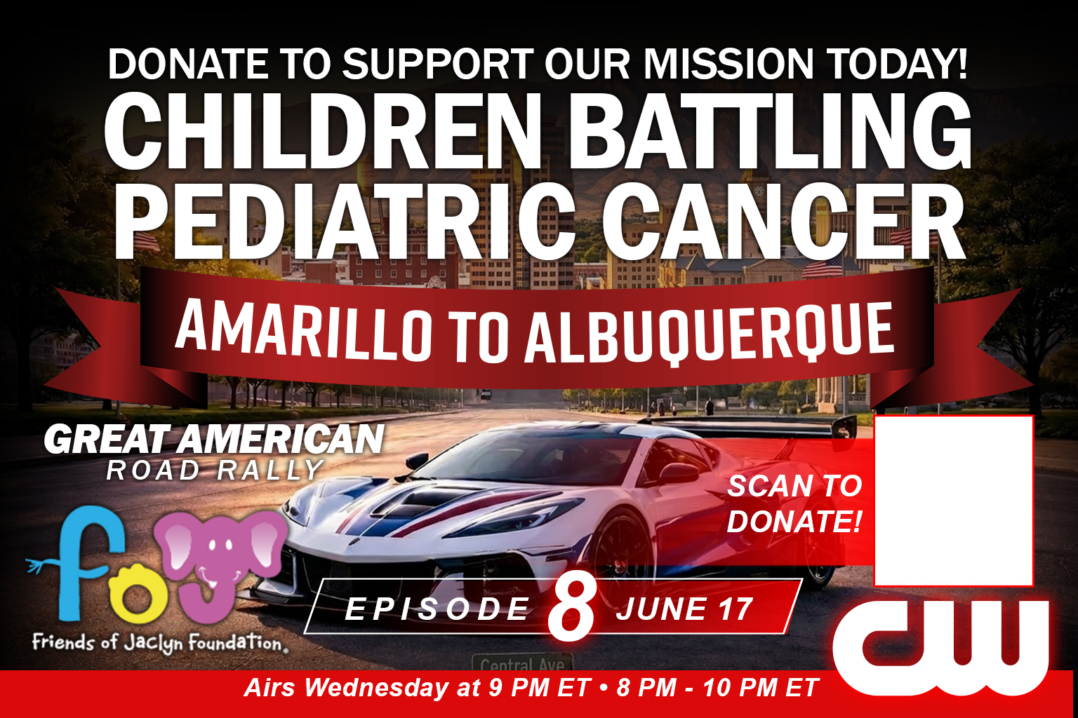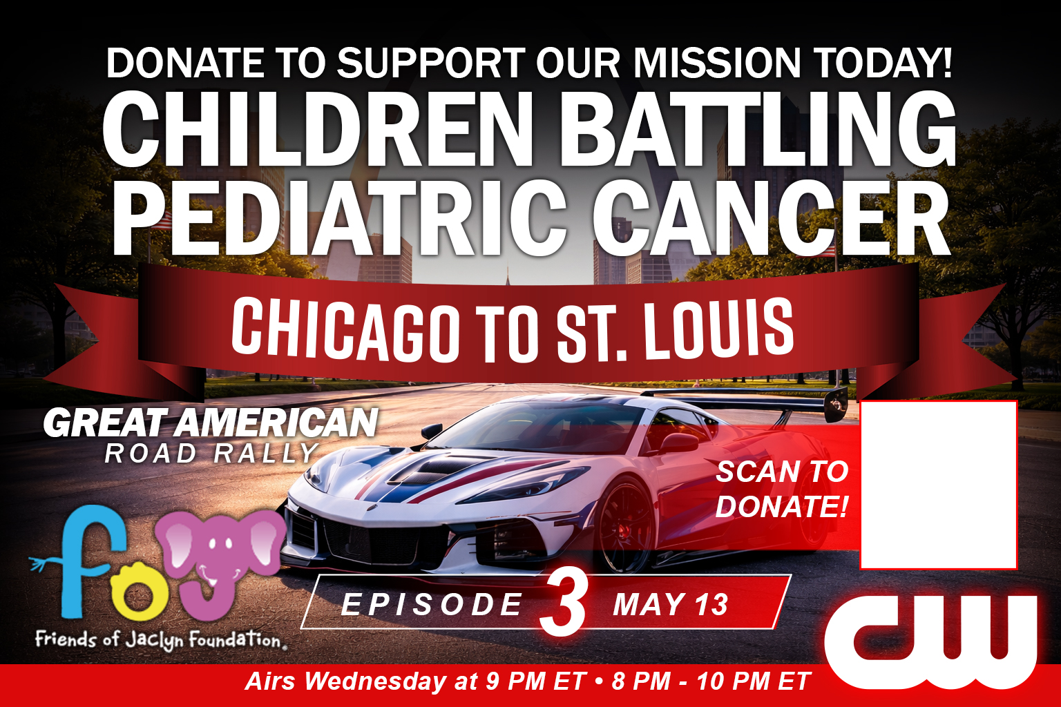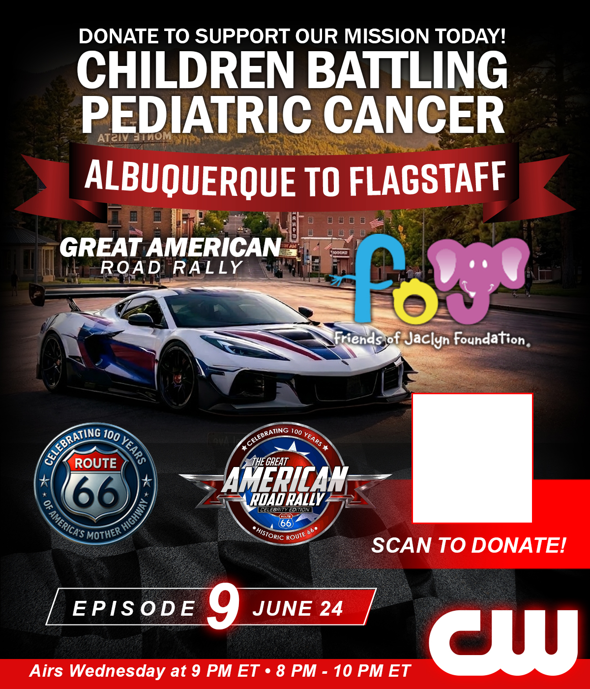 Starting May 13 at 9 PM ET, the Great American Road Rally takes over The CW Network — with new episodes airing every Wednesday night for 12 consecutive weeks. From coast to coast, viewers will experience the cars, the concerts, the community, and the mission supporting the Friends of Jaclyn Foundation. Don’t miss a single mile of the journey.