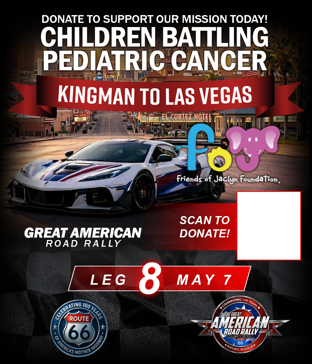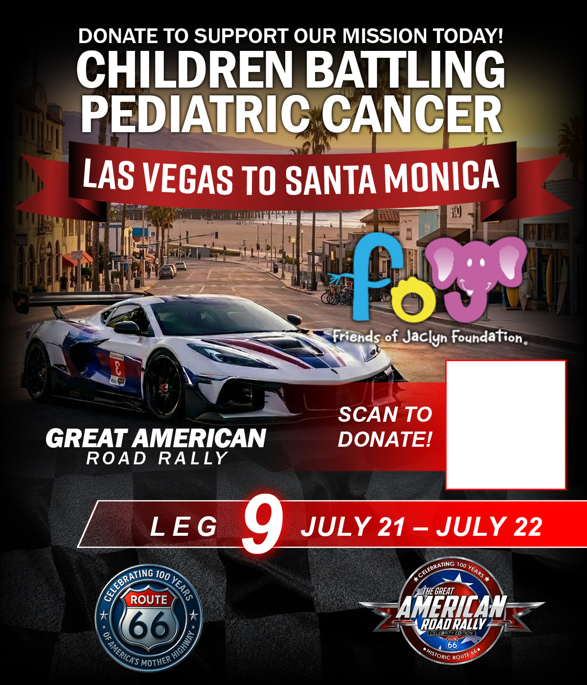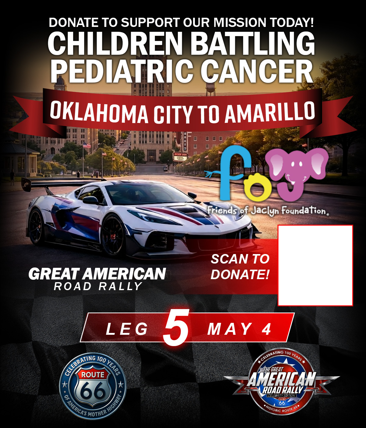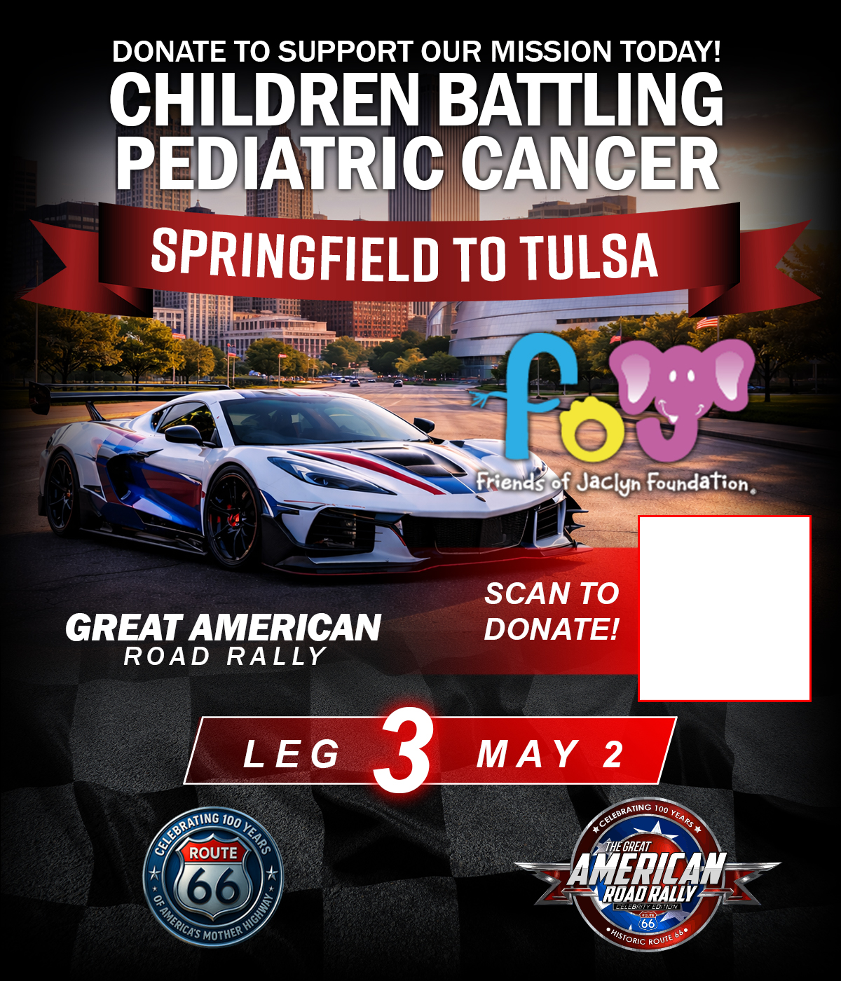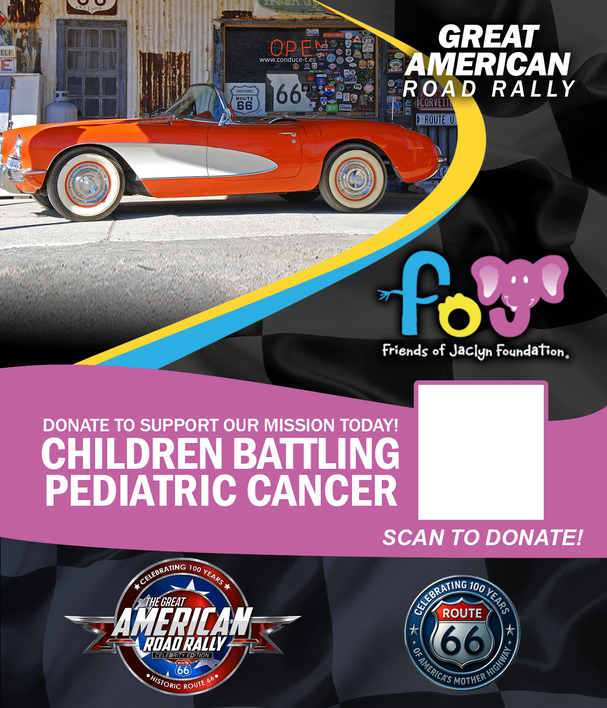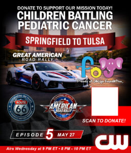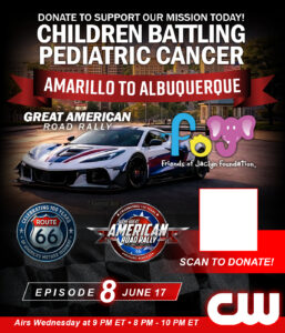 The Great American Road Rally (GARR) is a moving celebration of American history and heart. With 250 cars honoring America’s 250th birthday and 100 Harley-Davidsons representing Route 66’s 100th anniversary, this journey stretches across the country in true patriotic fashion. Each stop features a community car show, a live concert that evening, and a Friends of Jaclyn Foundation booth dedicated to raising awareness and support for families fighting pediatric cancer. This rally is about miles, memories, and making a difference.